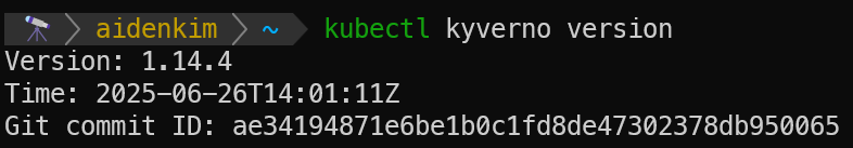 You can then verify that the Kyverno CLI is installed correctly with the following command:
