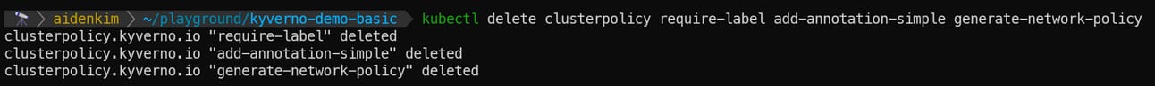 kubectl delete clusterpolicy require-label add-annotation-simple generate-network-policy