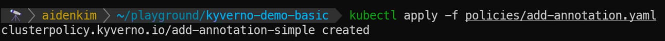 kubectl apply -f policies/require-label.yaml You can view the Kyverno ClusterPolicy deployed with kubectl as follows: